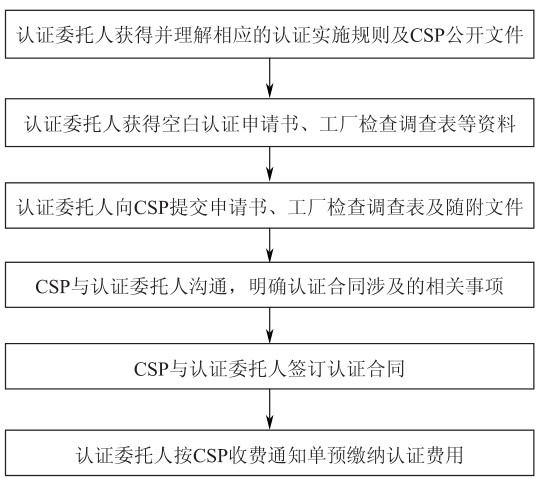CSP通過www.csp.gov.cn網(wǎng)站和其他形式的公開文件等方式發(fā)布認(rèn)證收費(fèi)明細(xì)表。認(rèn)證委托人按CSP的收費(fèi)通知單繳納費(fèi)用。